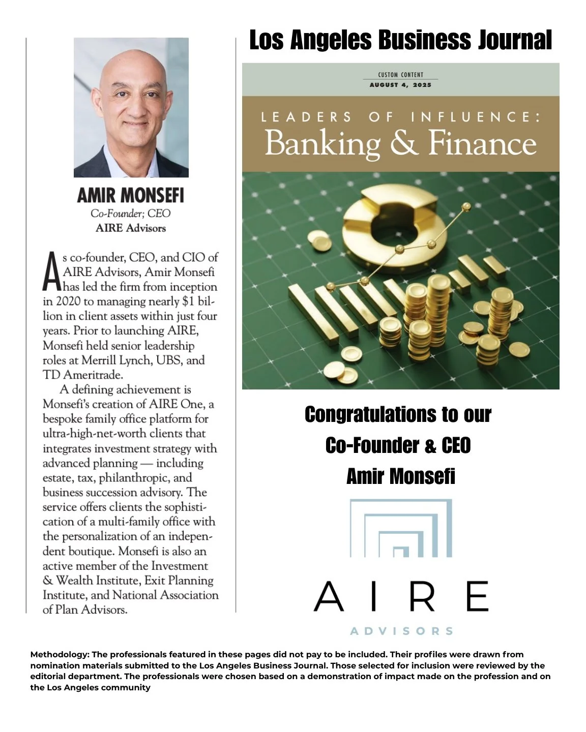 Los Angeles Business Journal Leaders of Influence in Banking and Finance: Amir Monsefi